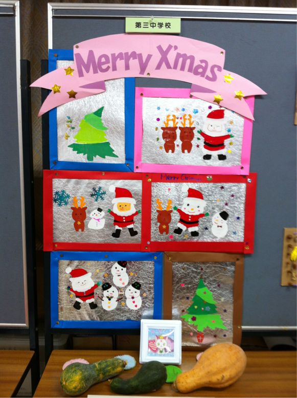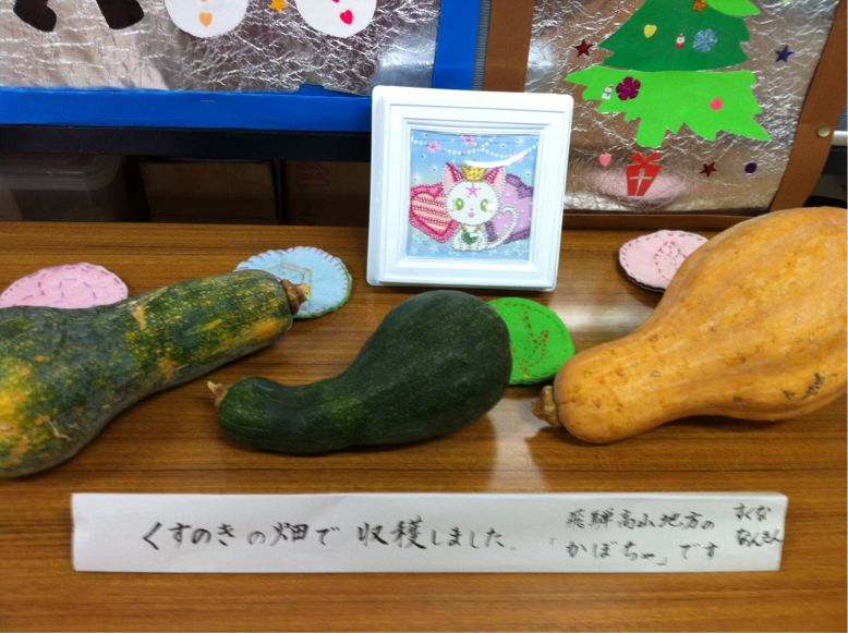 公民館で行われている行事、フェスタにんげんばんざいにくすのき学級の子どもたちの作品や畑で収穫した野菜が展示されています。