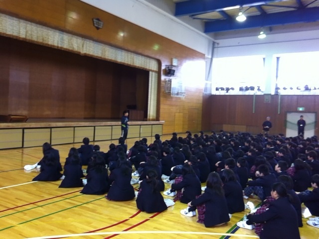 今日は、平成24年最終の授業日です。各学年とも2時間の授業と学年集会、最後に全校集会を行いました。
