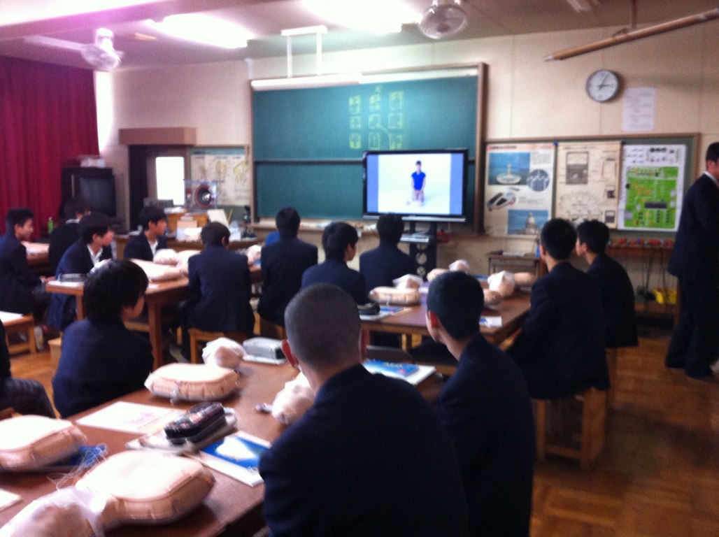 今日から3日間、市消防本部と市役所危機管理グループに来ていただいて、地域の防災力を高めるため、3年生対象に安全安心スクールを行っています。
