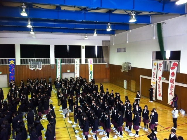 1、2年生は、4限、三年生を送る会にむけてのリハーサルを行ないました。