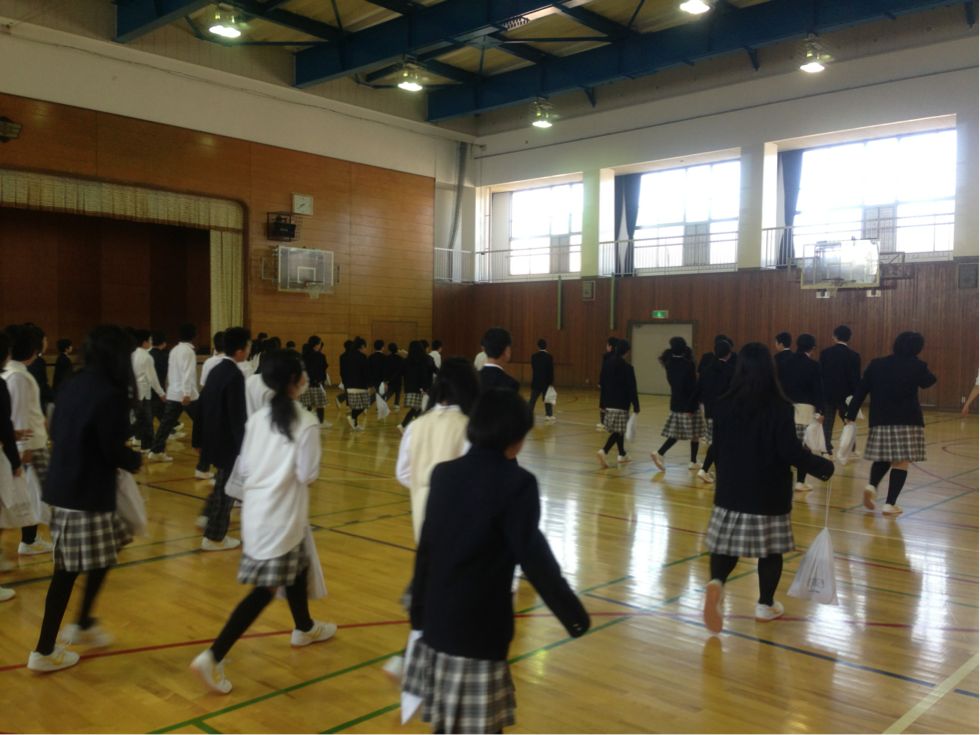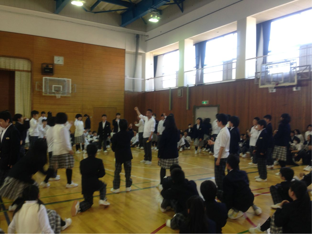 今日の集会では、宿泊学習に向けて集合やレクレーションの練習をしました。