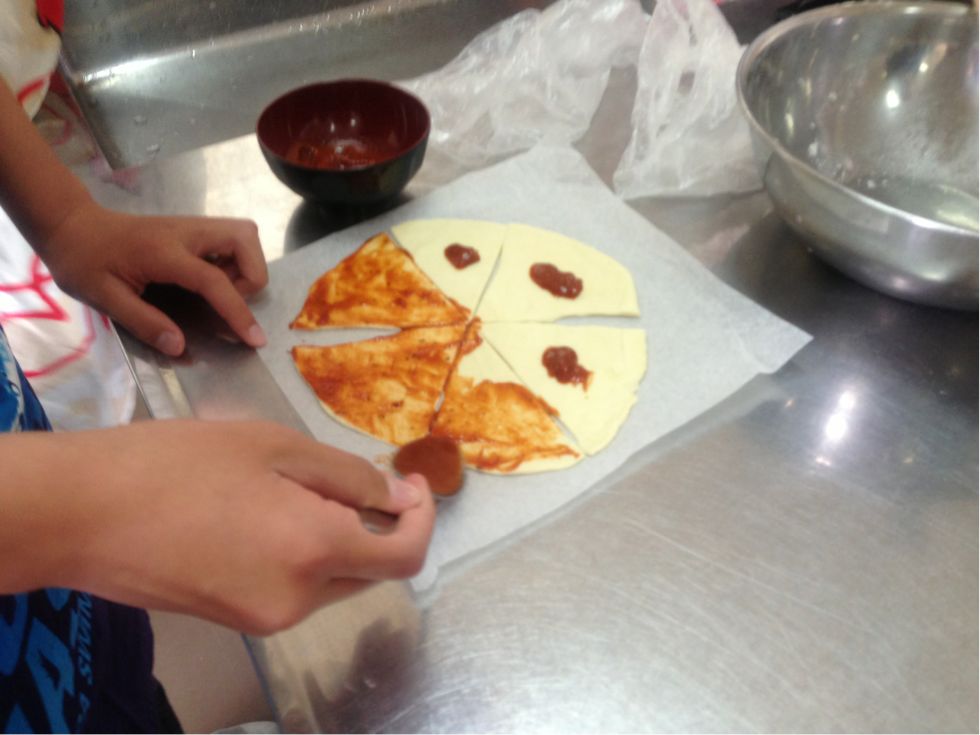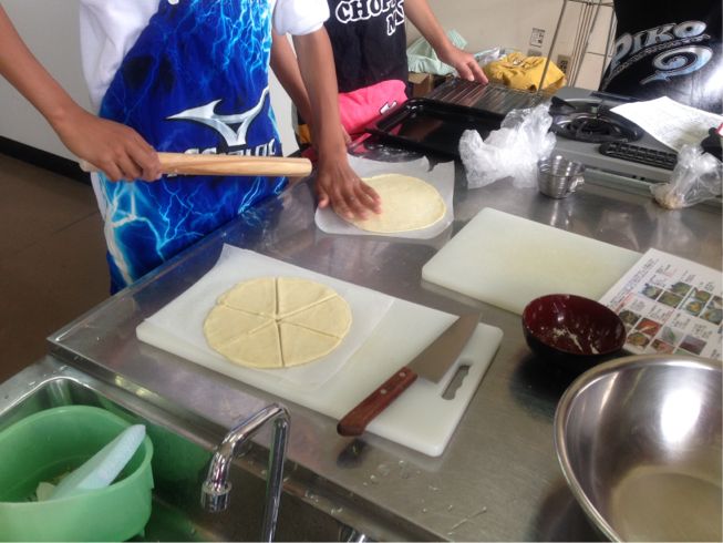 C組が家庭科の時間にピザ作りに取組みました。