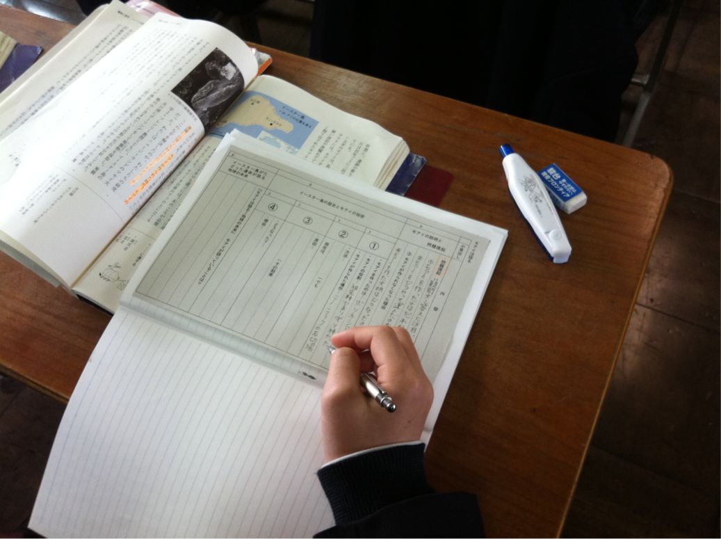 二年生の国語では、習熟度別授業を実施しています。内容は、現代文「モアイは語る」を学習しています。