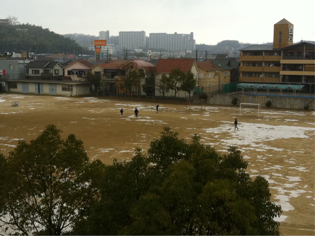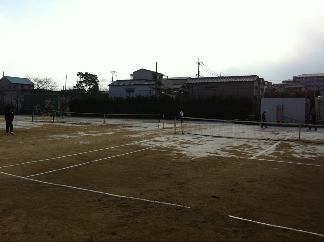 朝からの雪に負けじとテニス部とサッカー部です。