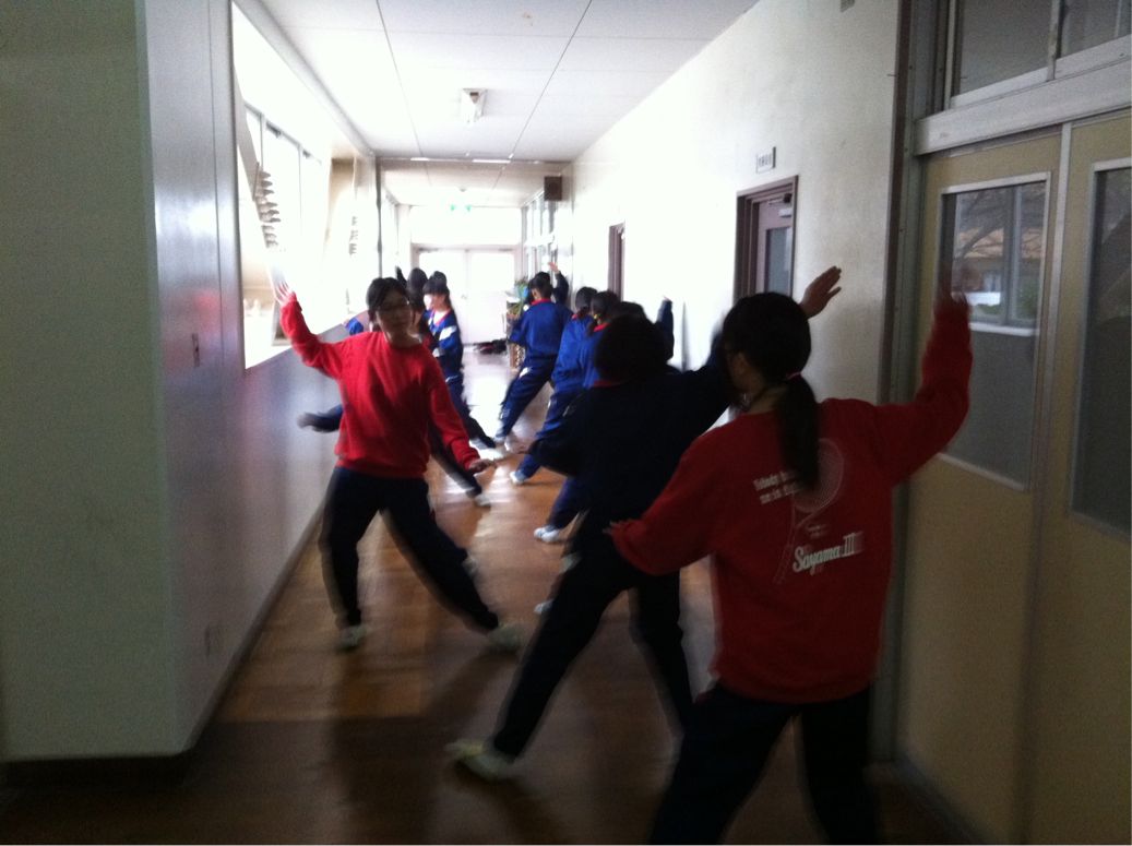 ソフトテニス部は、室内トレーニング。