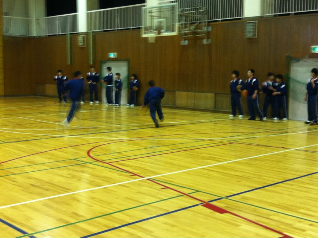 体育館では、先週見事優勝した男子バスケットボール部が練習していました。