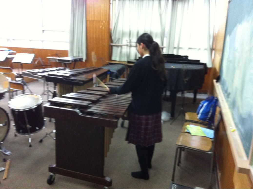 音楽室では、府大会ソロコンテストにむけて1C 大久保 由梨さんが頑張っていました。