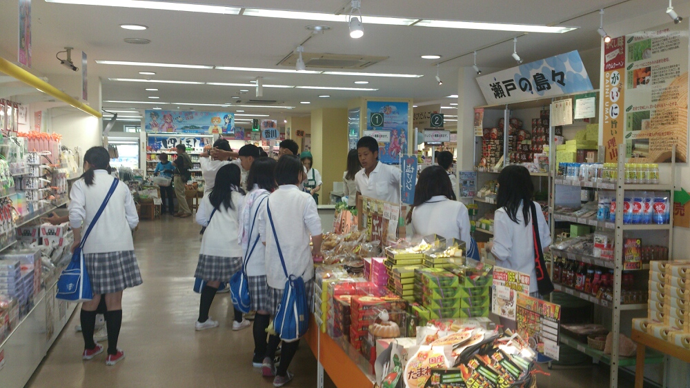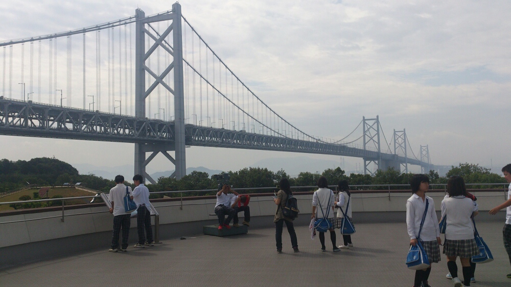 B組とE組は瀬戸大橋の途中にある与島SAでおみやげを買ったり、写真を撮ったりしています。