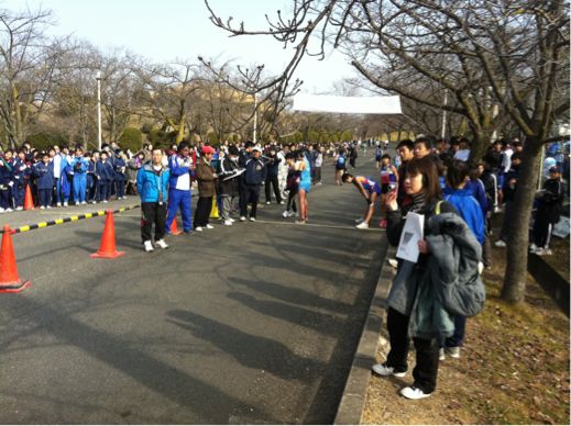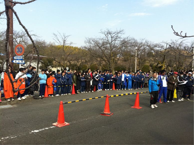 今日は、昨日までの寒さがうそのような暖かい陽射しの中、本校から陸上部、男子バスケットボール部、サッカー部が第55回南大阪駅伝競争大会に参加しました。