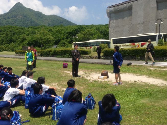 宿舎に到着し、休暇村のかたにあいさつをしました。