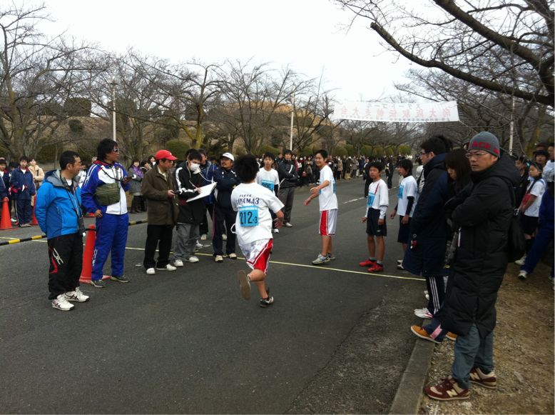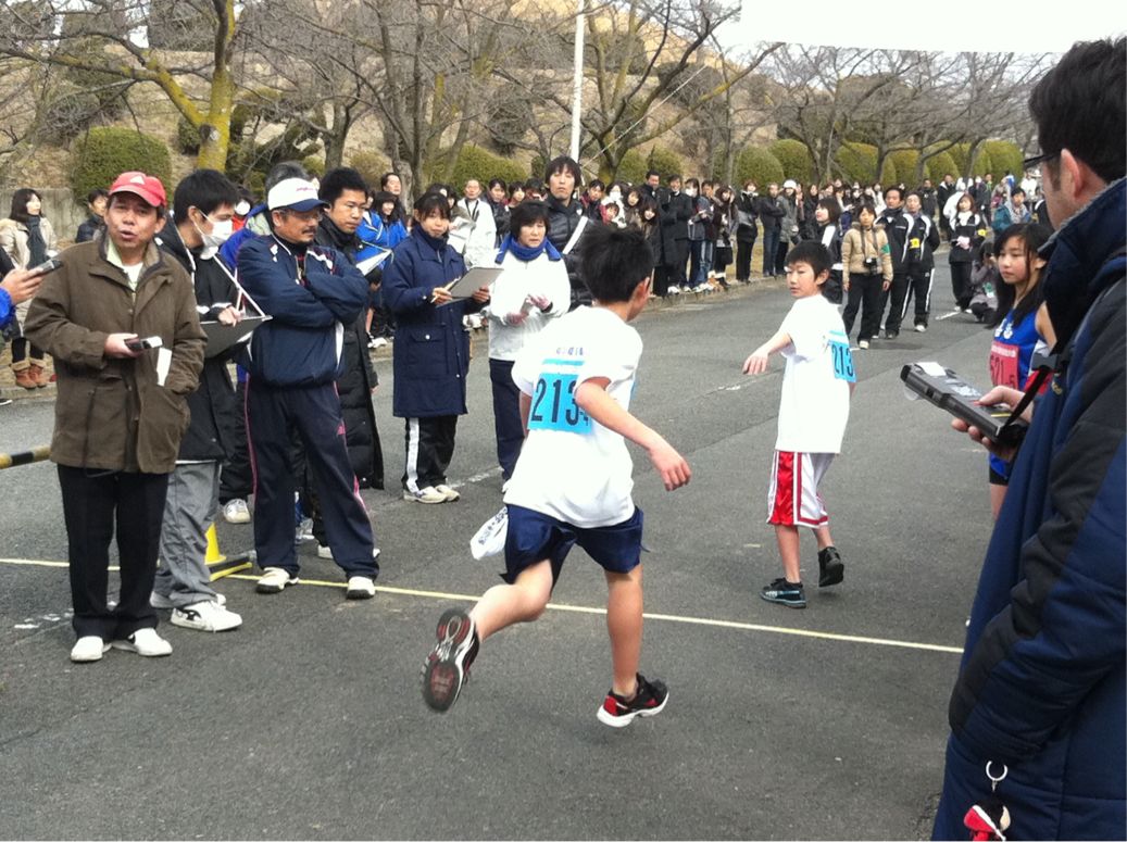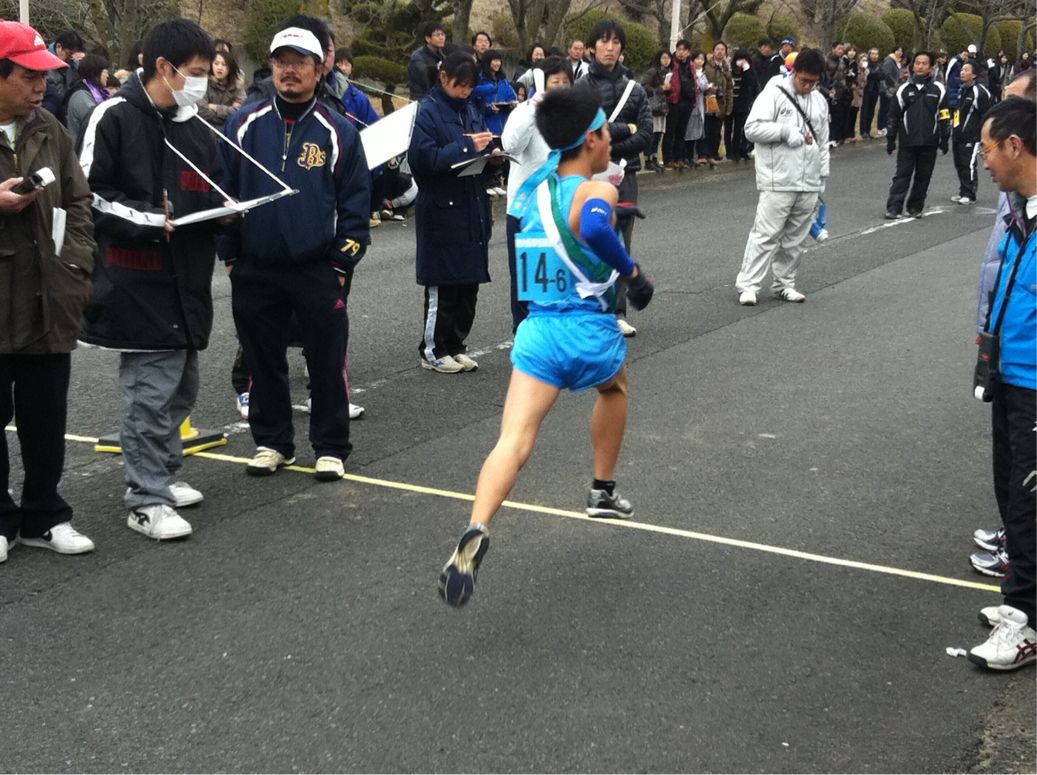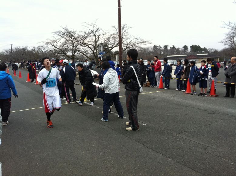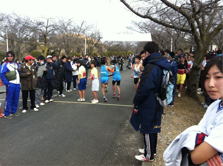 サッカー部、バスケットボール部3区から4区へタスキが渡りました。