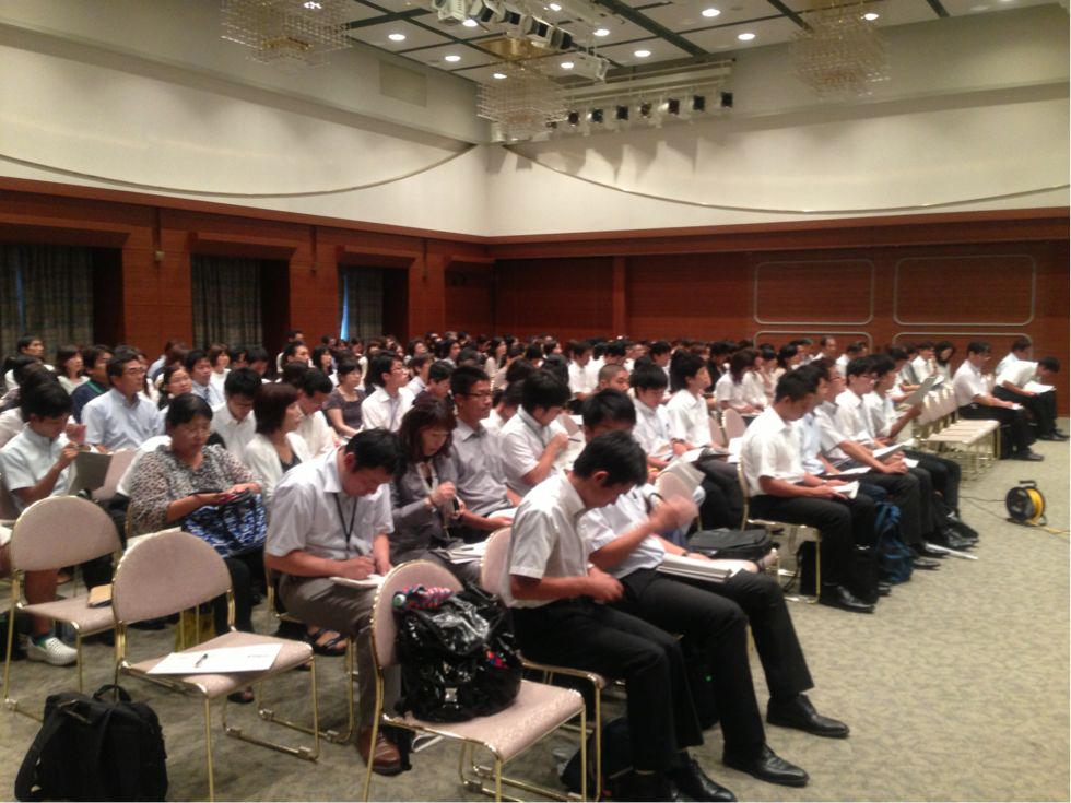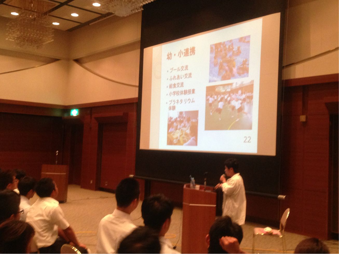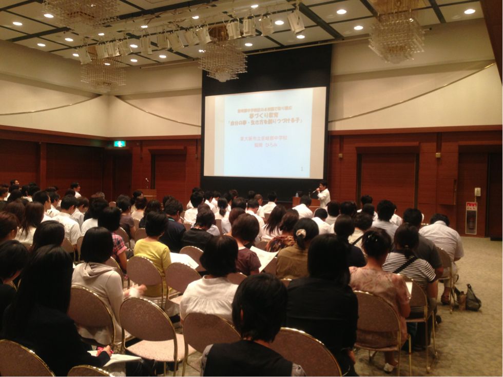 午後からは、南中学校区・狭山中学校区の先生がたも参加して、さやかホールのコンベンションホールで、キャリア教育についての研修です。