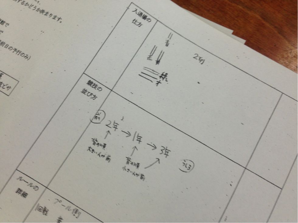 体育大会に向けて、3年生の各カラーの代表者と先生がたで打ち合わせを行いました。