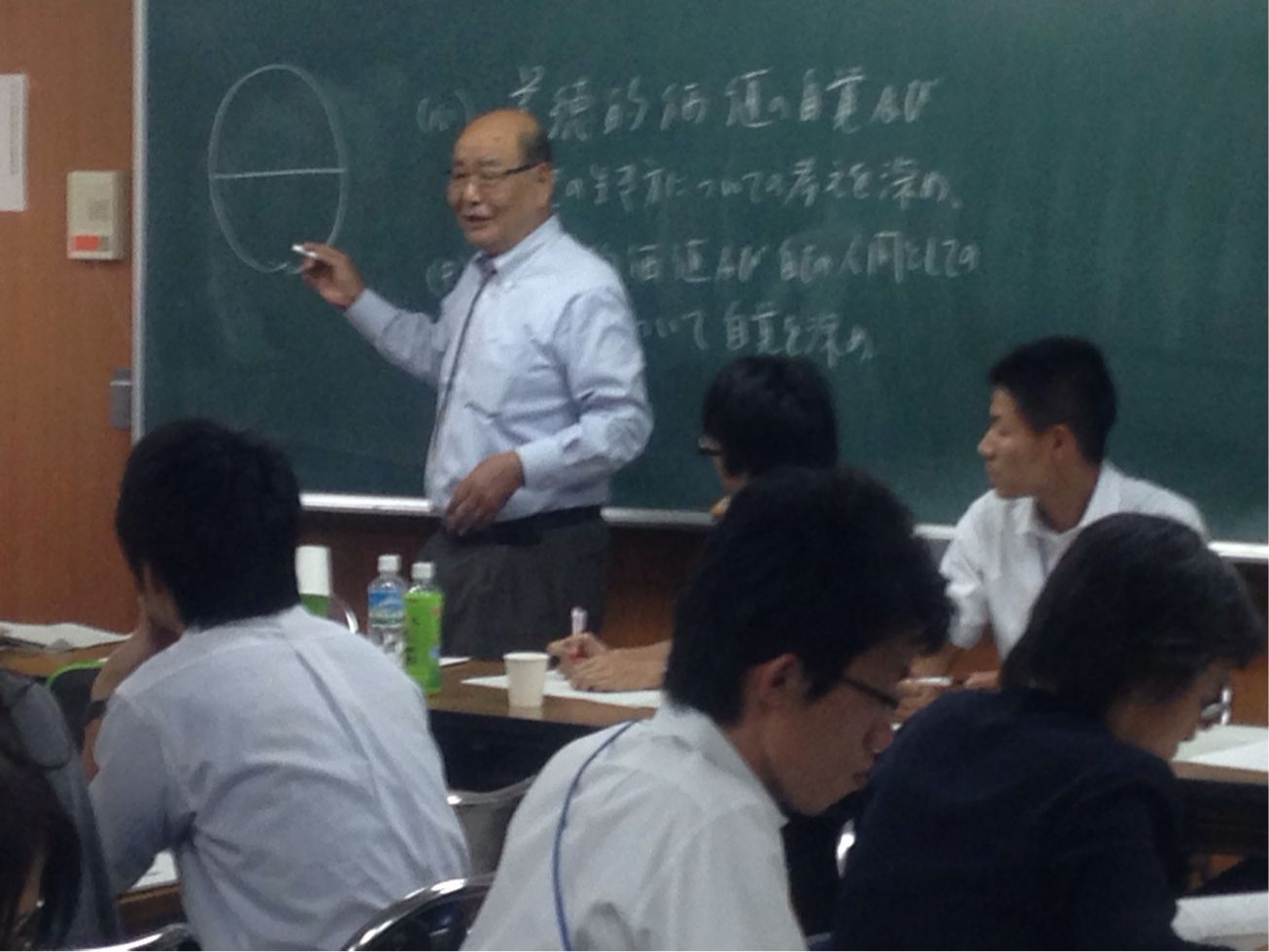 市内の先生や市教育委員会、元文部省教科調査官の横山先生にも来ていただいて研究討議を行います。