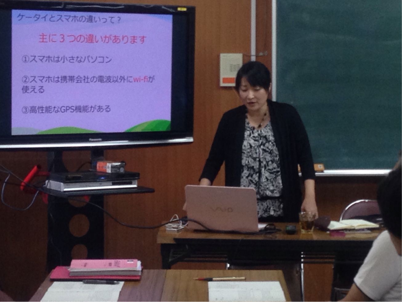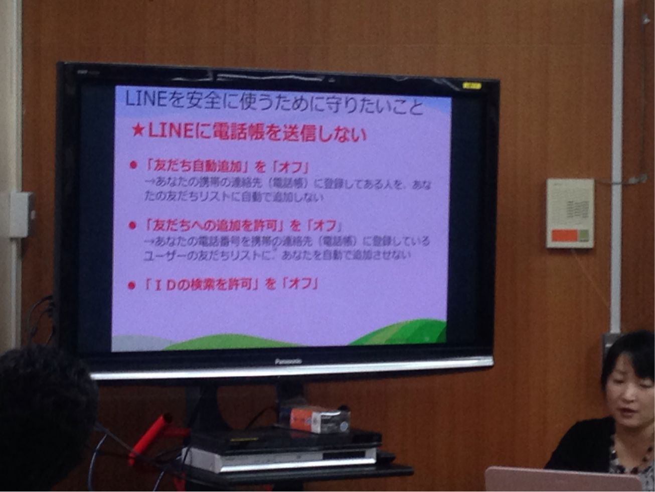 大人が知らない間に子どもたちの世界が広がっていることや、ラインやブログに書きこんだ写真や文章から生活圏が特定されることなど、便利さの裏側に潜む危険性を教えていただきました。