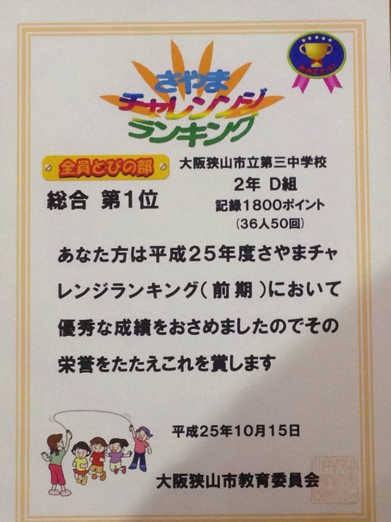 大阪狭山市で長縄のチャレンジランキングを行っています。