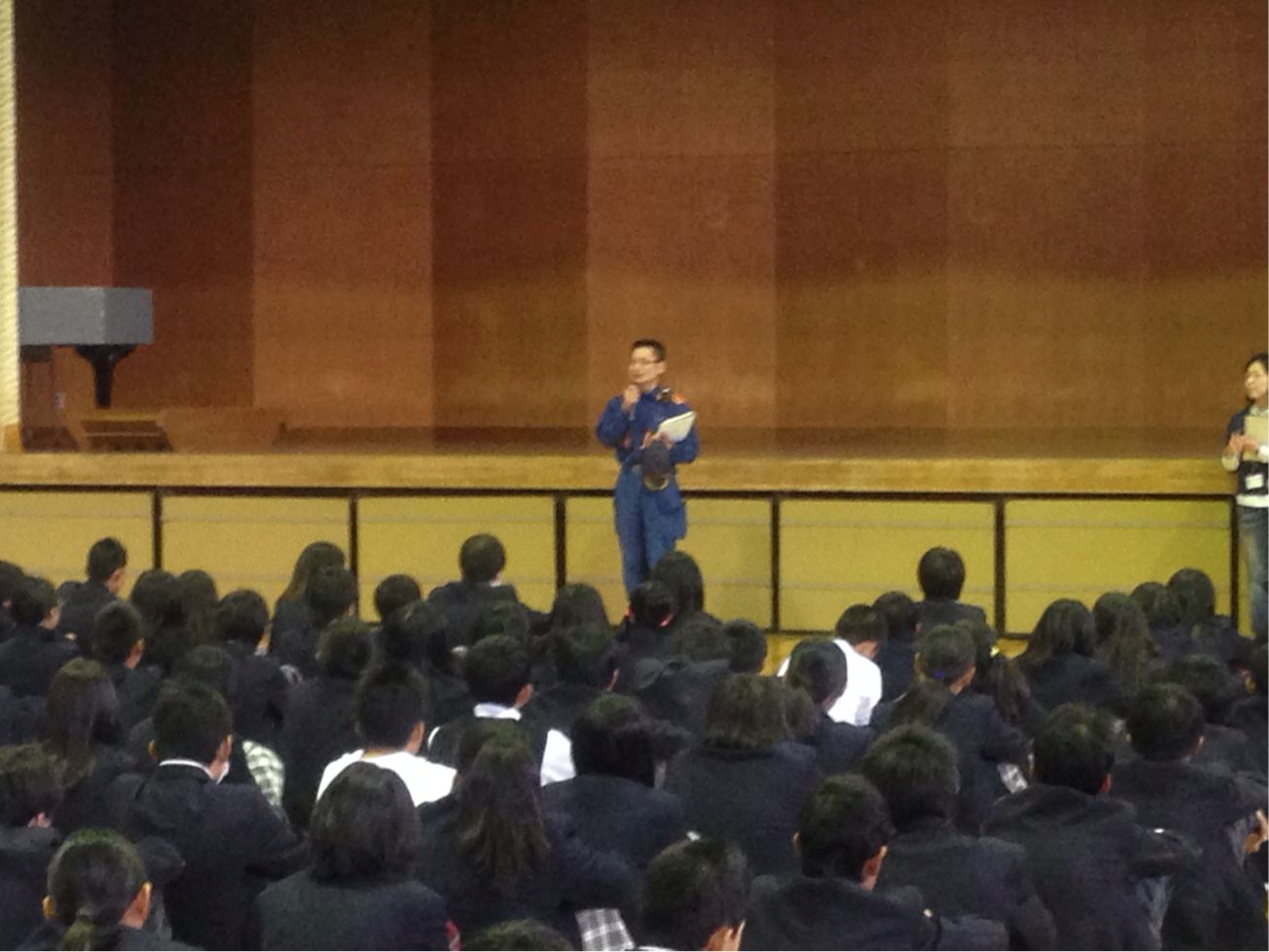 消防本部のかたから、地震の際の注意点などの話をしていただきました。