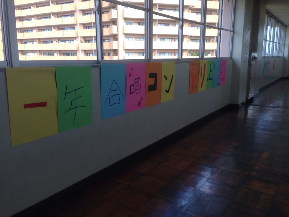 授業を受けている一年生は午後、国際理解学習、明日は合唱コンクールです。