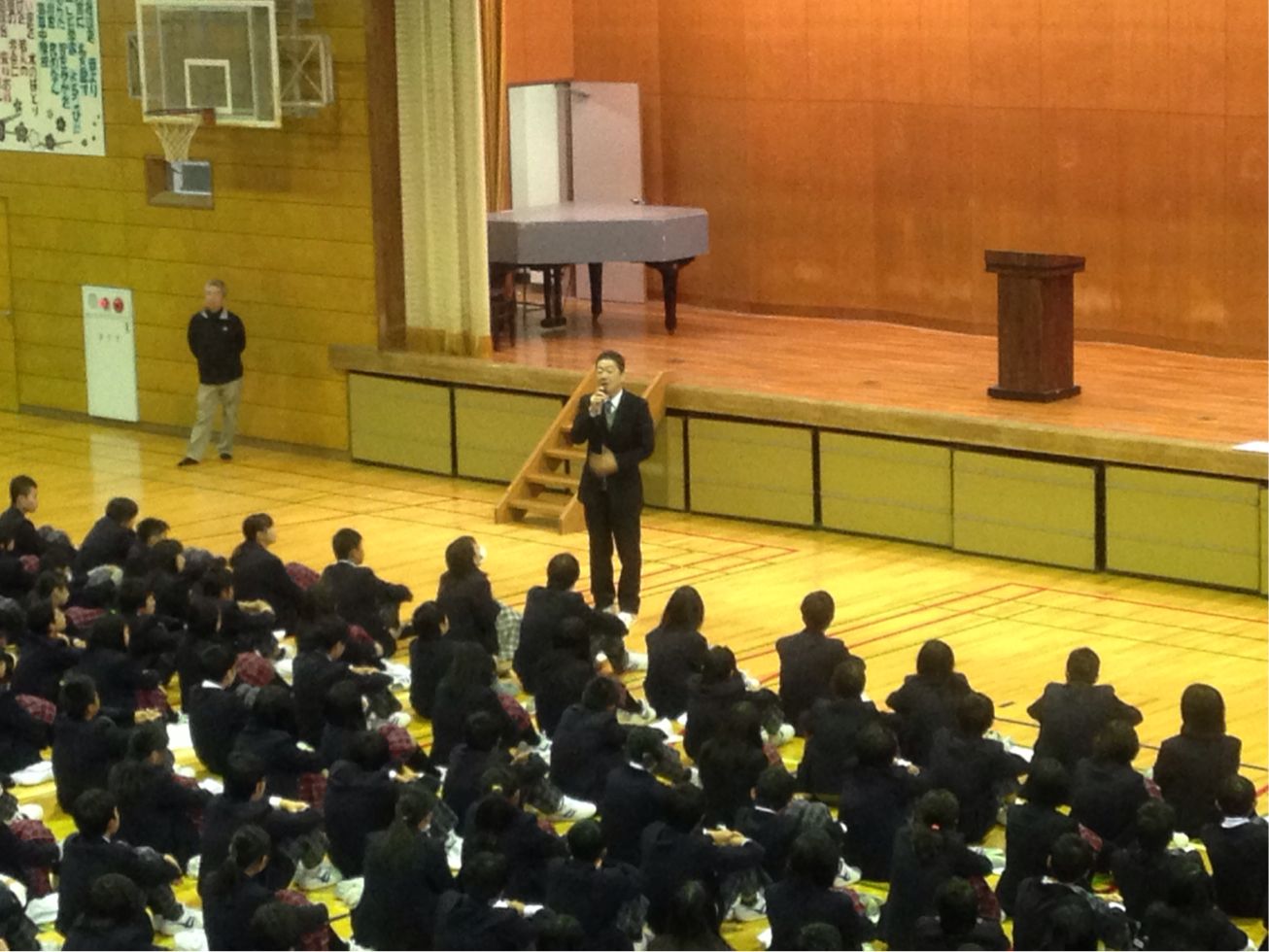 全校朝礼がありました。校長先生から教室の掲示など、環境整備についての話がありました。