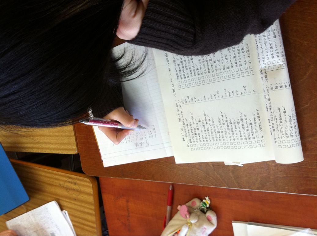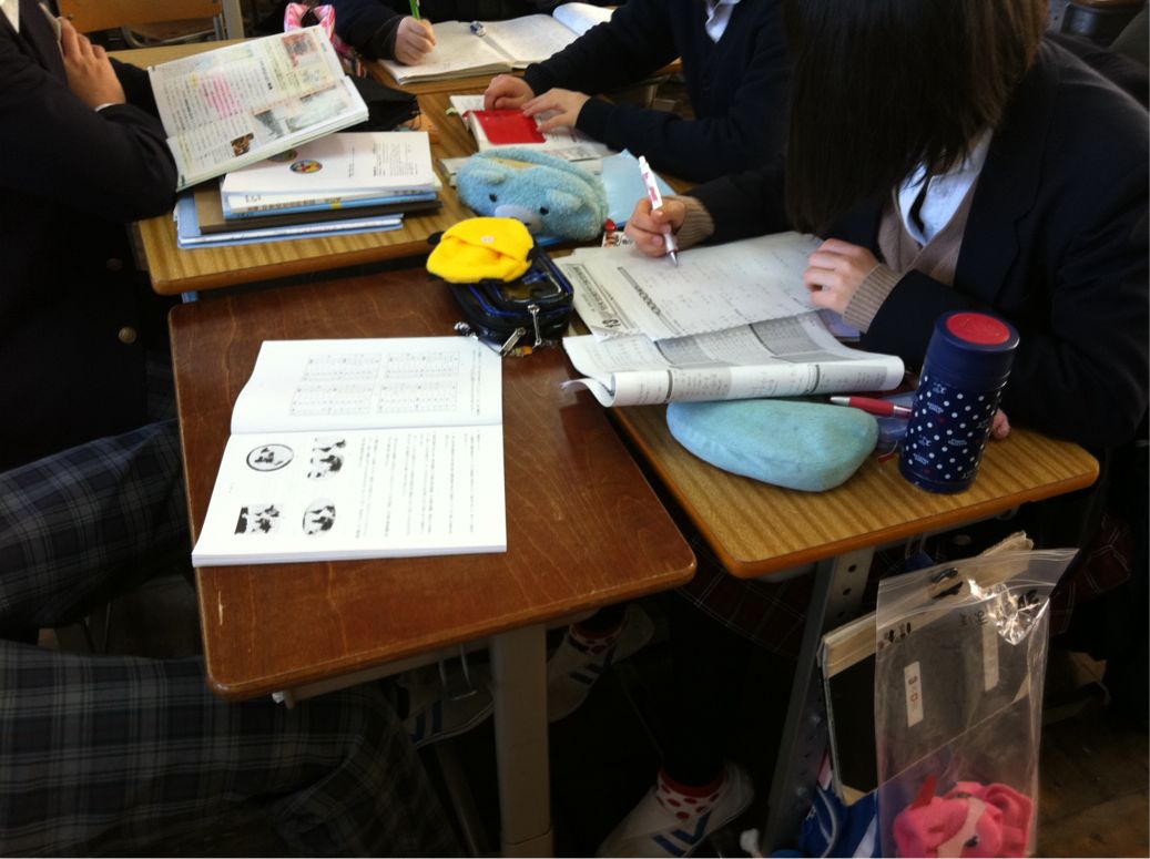 三年生の教室を覗いてみると、明日の私立受験にむけて、真剣に取り組んでいました。