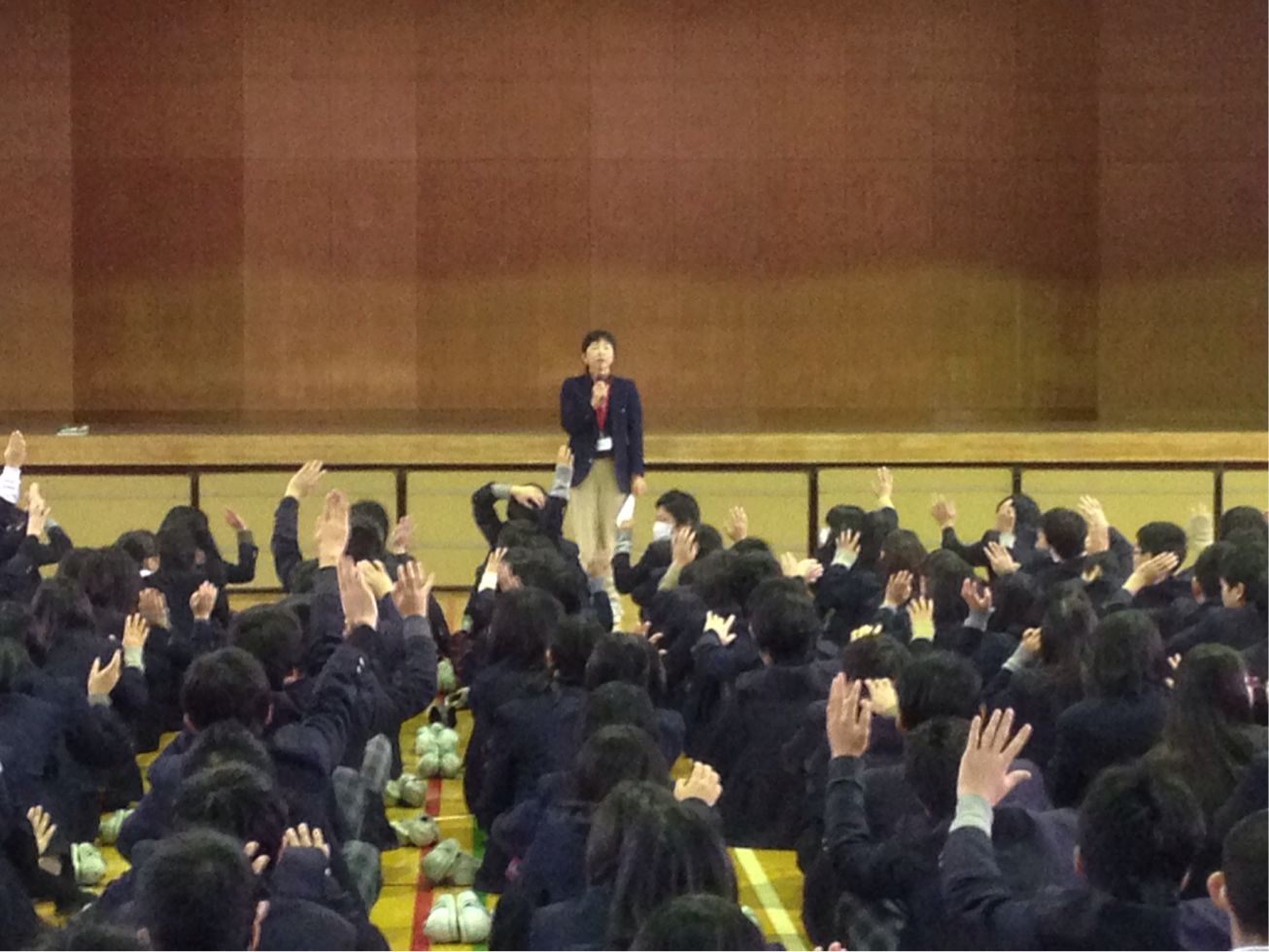 3年生は願書の購入や進路についての話が進路指導主事の中里先生からありました。