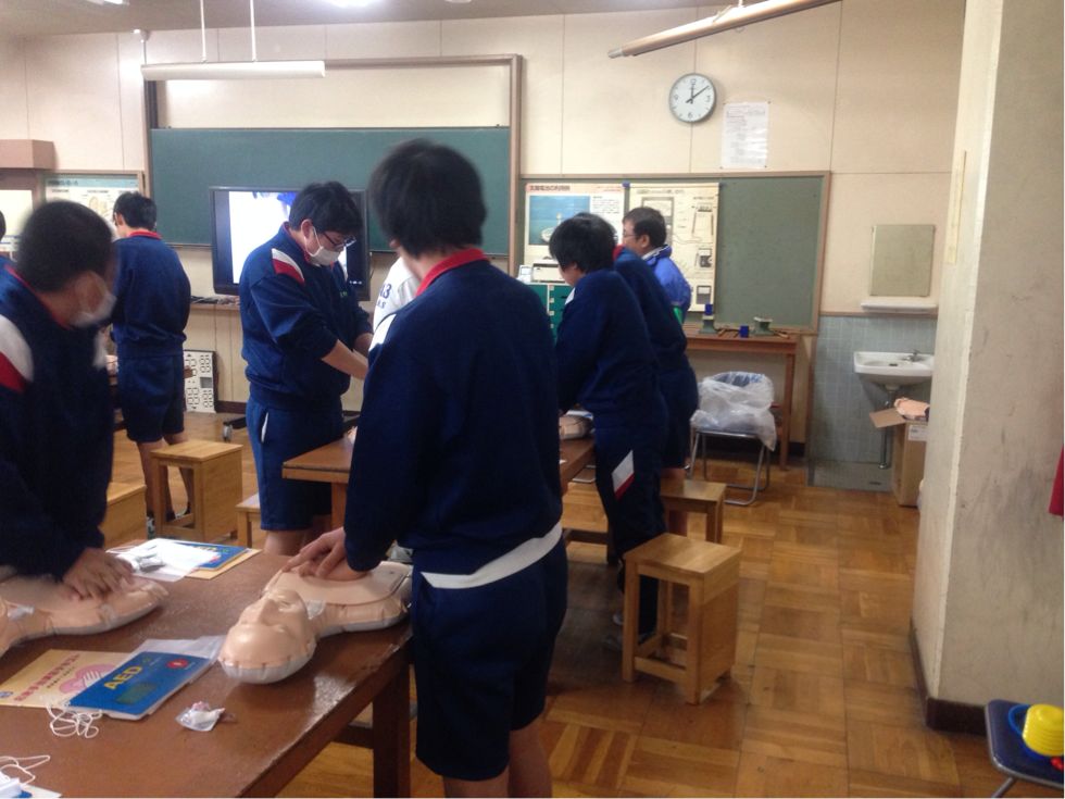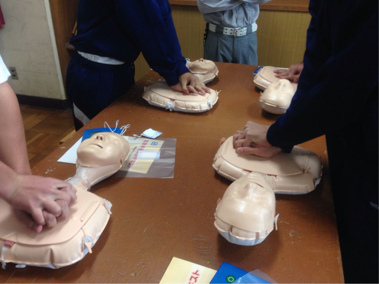 卒業後、地域の一員として救護ができるように、3年生で実施しています。