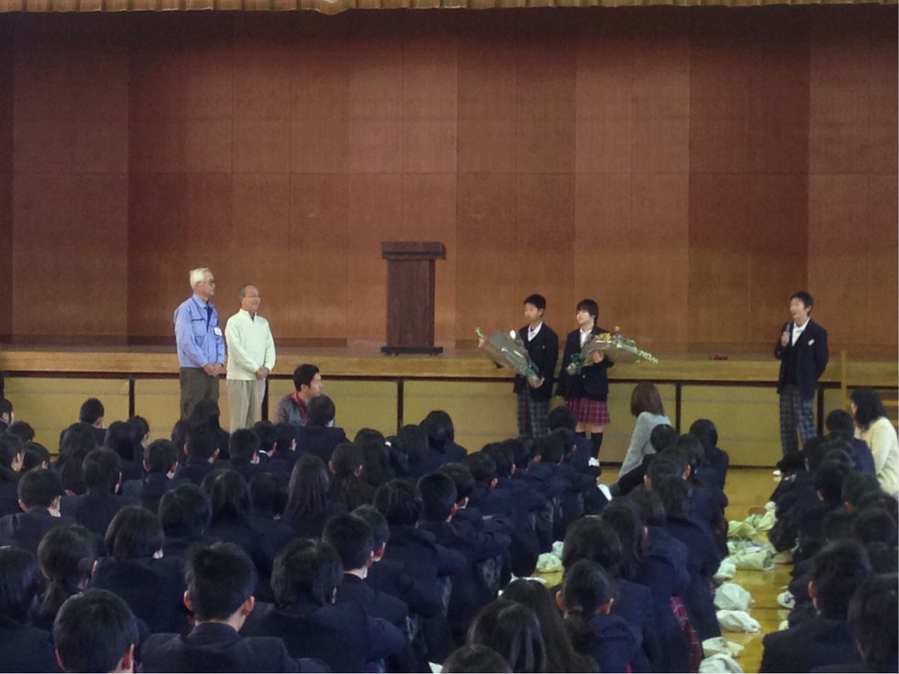 全校集会でお礼を言いました‼