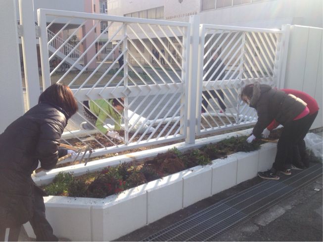 PTAの皆さんは花壇の花の植えかえに朝早くから来てくれています。
