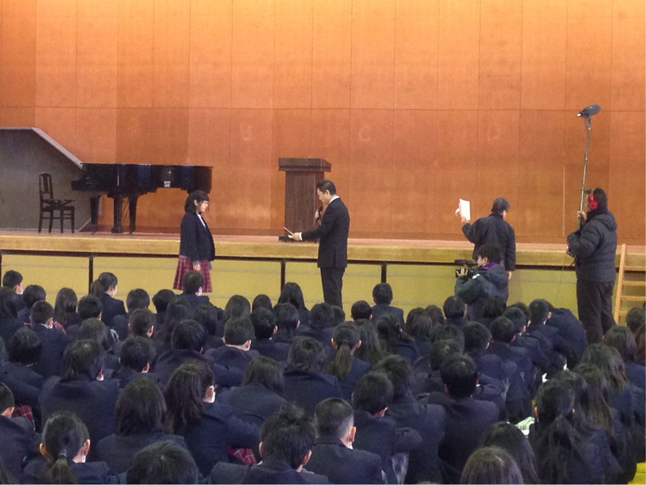 全校集会で表彰を行いました。