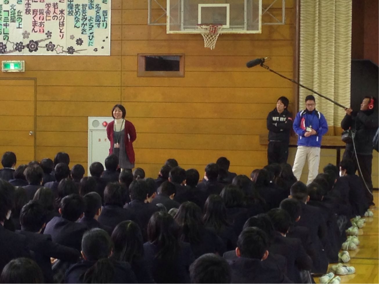 大場先生が綱引きの全国大会で優勝したので集会で紹介しました。