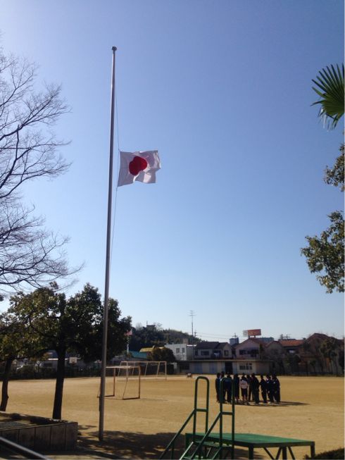 第三中でも弔意を表明し、半旗掲揚と2時46分に校長先生が校内放送で黙祷を捧げました。