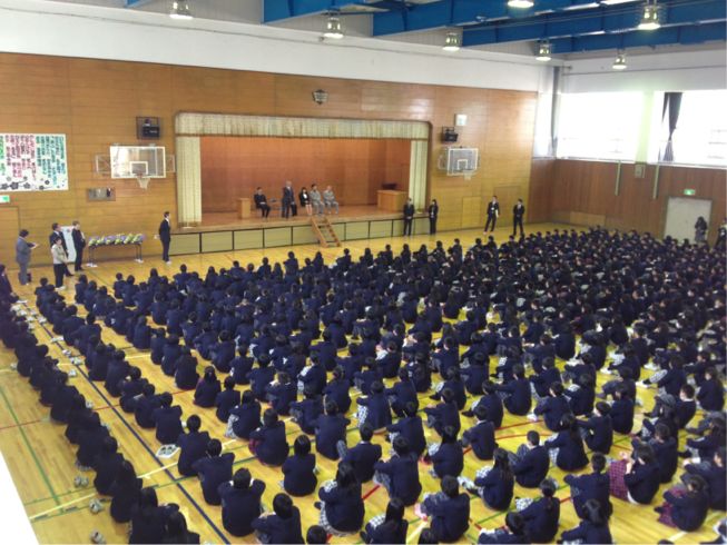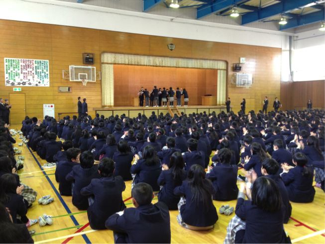 本校を離れる教員たちとは直接の関わりがなかった一年生も、一生懸命に話を聞き、暖かい拍手を送っていました。