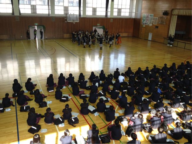 今日は1年生が学年集会および授業、2.3年生が5教科の実力テストという日程の中、