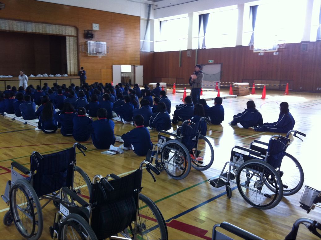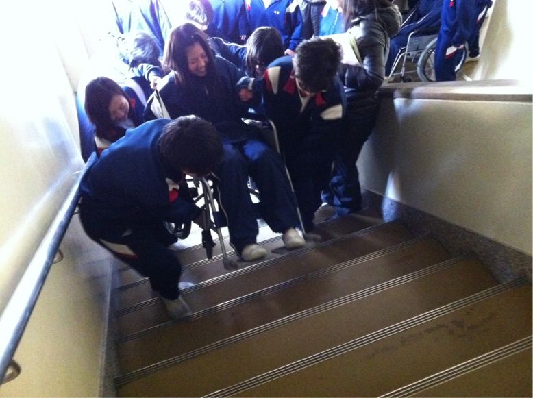 体験後、女子生徒がこんなコメントをくれました。「後ろ向きに下がる車イスは本当に怖かったです。障がいをもつ方の気持ちに少し近づけたように思います。今日は、貴重な体験ができました。」