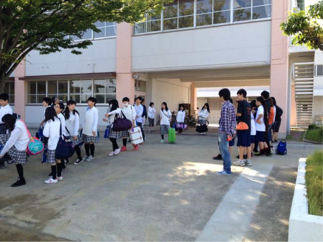 出発式の様子です。前学年主任の大鳥先生も含め、大勢の方が駆けつけてくれました!!