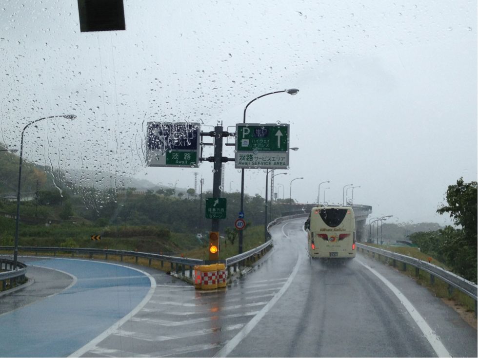 雨・風ともにひどいですが、無事に淡路SAへ到着しました。