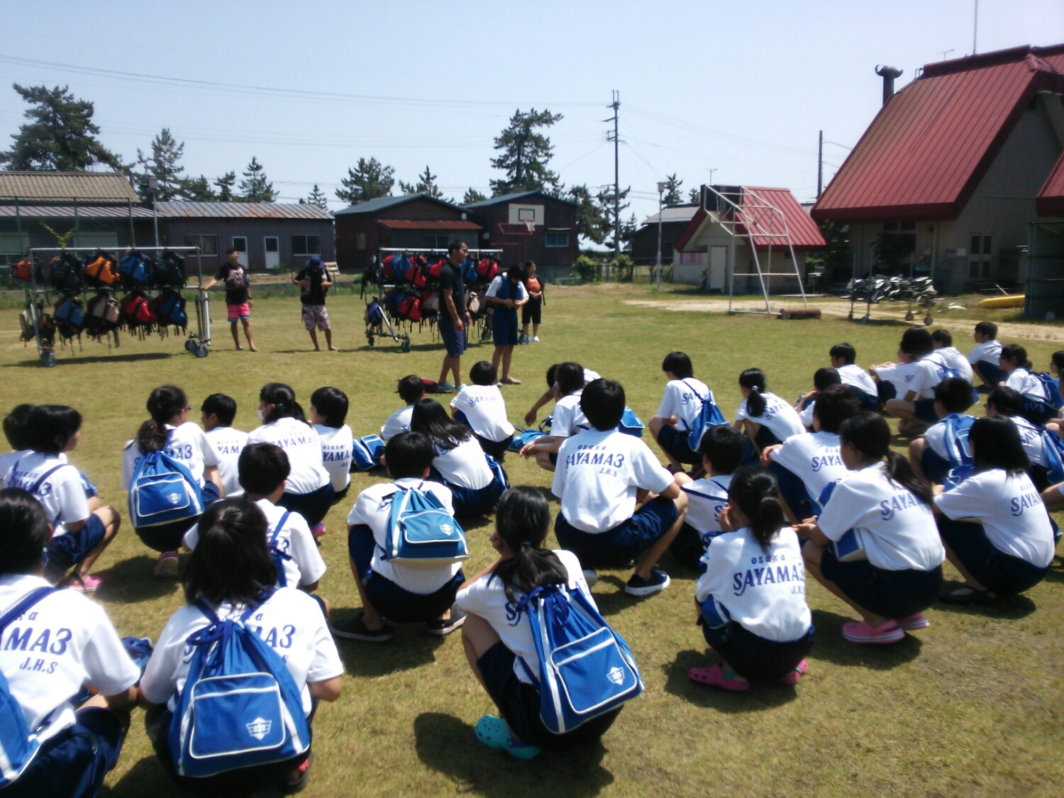 まずは、命を守るライフジャケットの必要性と付け方のレクチャーです。