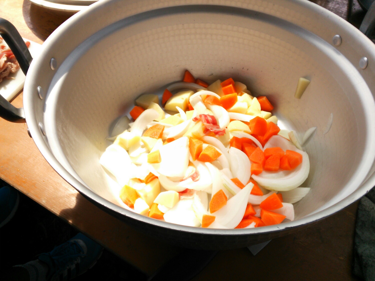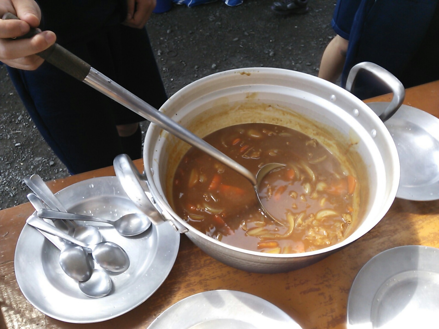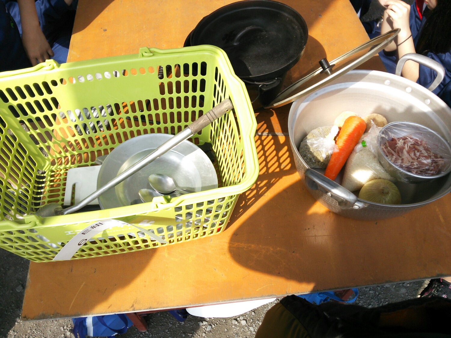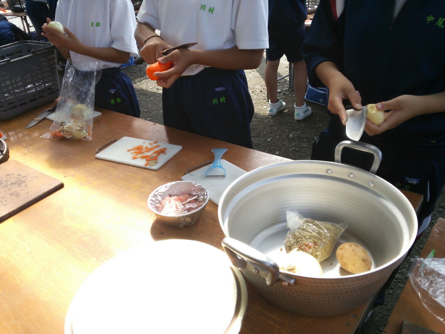 各班、ご飯・カレー・カマドに分担します。