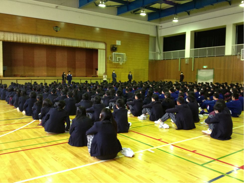 今朝、3年生の卒業に向けて、1.2年生の合同集会が開かれました。