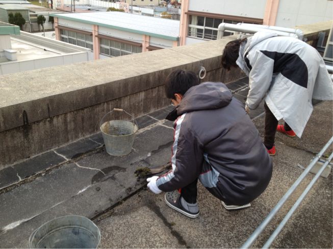 金曜日の放課後、市の協力のもとで屋上の清掃が行われました。